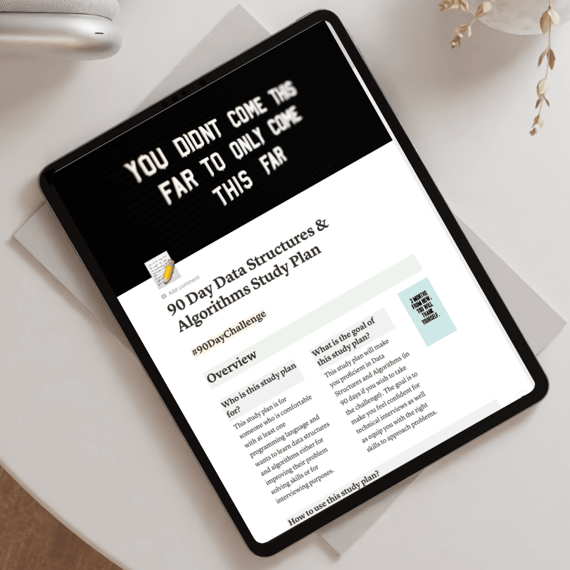 This study plan will make you proficient in Data Structures and Algorithms (in 90 days if you wish to take the challenge). The goal is to make you feel confident for technical interviews as well as equip you with the right skills to approach problems.