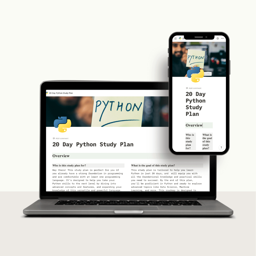 This study plan is tailored to help you learn Python in just 20 days, and will equip you with all the foundational knowledge and practical skills you need to succeed. By the end of this plan, you'll be proficient in Python and ready to explore advanced topics like Data Science, Machine Learning, and more.